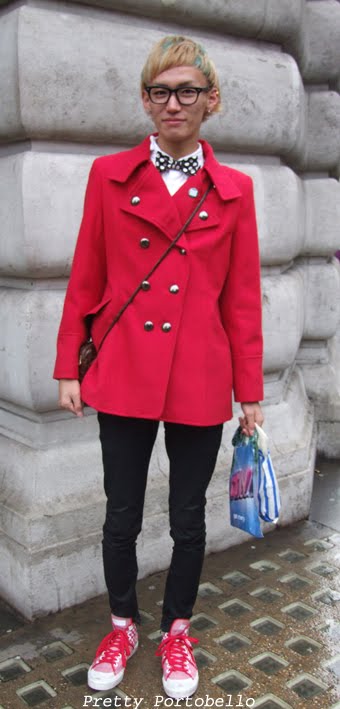 Alix, on Portobello Road.I was so jealous of her perfect fringe! She' s wearing a lovely leopard print coat, combined with a pair of Creepers on the same print. Grrrr!